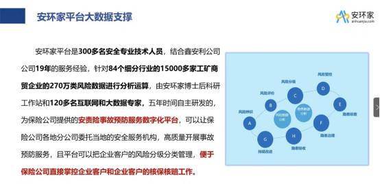 作為一家有強烈社會責任感的智慧安全生產(chǎn)風險管理信息技術服務商,鑫安利結(jié)合19年專業(yè)服務經(jīng)驗,由300多名安全專業(yè)技術人員,針對84個細分行業(yè)的15000多家工礦商貿(mào)企業(yè)的270萬類風險數(shù)據(jù)進行分析運算,由安環(huán)家博士后科研工作站和120多名互聯(lián)網(wǎng)和大數(shù)據(jù)專家,歷經(jīng)五年時間自主研發(fā)推出的國內(nèi)安全生產(chǎn)風險管理綜合服務云平臺,通過科技創(chuàng)新+人才培訓+服務標準賦能安全行業(yè),助力第三方安全服務機構(gòu)等市場主體全面提升其安全風險管理能力,實現(xiàn)盈利模式升級,占領市場先機。