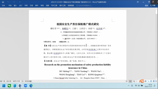 為貫徹落實應急管理部《關于進一步規(guī)范和加強安全生產(chǎn)責任保險工作的通知》(應急【2022】102號)文件精神,2022年11月27日下午,由安環(huán)家平臺和安環(huán)家企業(yè)安全風險管理研究院發(fā)起和組織的《基于企業(yè)安全風險大數(shù)據(jù)的安責險事故預防精準服務實施規(guī)范》標準研討會以視頻形式成功舉行,中國企業(yè)聯(lián)合會、中國科學院、中華聯(lián)合財產(chǎn)保險股份有限公司、浙江財產(chǎn)保險、中原農(nóng)險、國家能源集團、圖盧茲國立應用科學學院、鄭州大學、長城保險經(jīng)紀公司、奧創(chuàng)保險經(jīng)紀公司、福建省智慧安全技術服務機構(gòu)、重慶市智慧安全技術服務機構(gòu)等單位的專家學者和安全風險管理師代表30余人出席此次線上會議。與會專家們就目前安全生產(chǎn)責任保險事故預防服務普遍存在的走過場、與投保企業(yè)實際需求不匹配、保險公司防災減損效果不明顯等市場現(xiàn)象進行了研討,并就安環(huán)家平臺基于企業(yè)安全風險大數(shù)據(jù)的安責險事故預防精準服務實施規(guī)范進行了論證。會議由安環(huán)家平臺CEO、安環(huán)家企業(yè)風險管理研究院院長孔慶端主持!