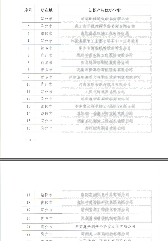 近日,河南省知識產權局公布了2022年度河南省知識產權示范企業和優勢企業名單,河南鑫安利安全科技股份有限公司榜上有名。經企業申請、鄭州市高新技術產業開發區推薦、專家評審、網上公示等環節,鑫安利憑借在知識產權創造、運用、保護和管理方面的綜合實力,被授予“2022年度河南省知識產權優勢企業”稱號。