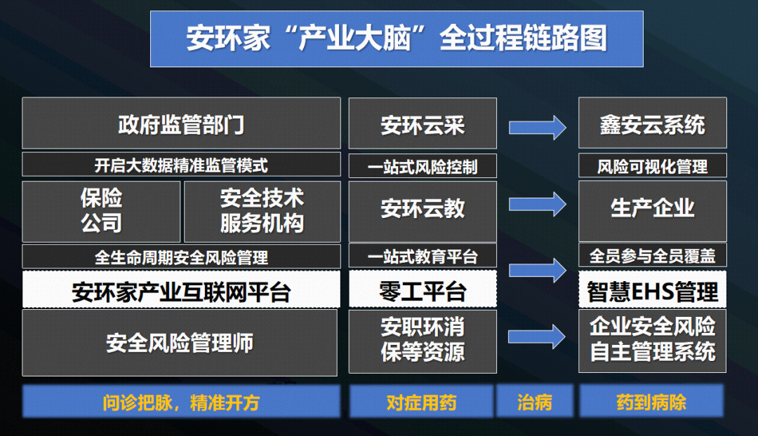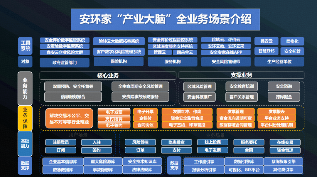 范強指出,所謂“產業大腦”就是以產業互聯網為核心的產業治理和創新服務基礎設施,是一個行業最底層的數智底座。安環家產業大腦致力于深度服務安全風險產業鏈每一個參與主體:政府監管部門、服務機構、保險機構、安全風險管理師、靈活用工平臺、安全培訓機構、安全防護用品廠商、安全科技用品廠商等,提升行業整體效率,促進行業繁榮共生,最終構筑一個多方共贏、多元共治的安全生產全新格局。